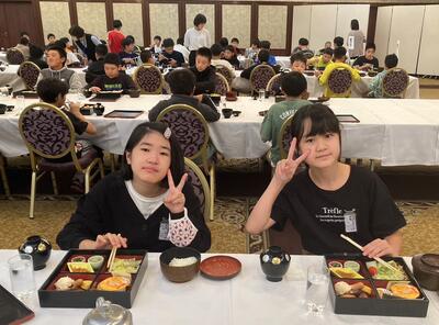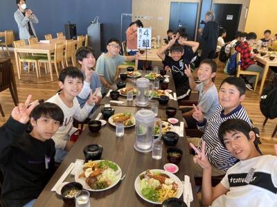 登山後、各部屋に入室、直後に入浴となりました。慌ただしいスケジュールでしたが、みな時間を意識して動くことができています。その後は夕食です。むかばき登山でいつも以上に体力を使った子どもたち。たくさんおかわりもしています。