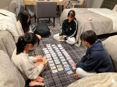 おはようございます。修学旅行2日目のスタートです。本日の起床時刻は6時、各部屋の様子はというと・・・眠たそうに小声で「おはようございます」と帰ってくる部屋もあれば、荷造りも準備万端整えてトランプを楽しむ部屋もありました。「今日もがんばるぞー