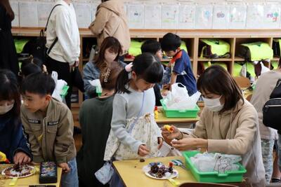 参観授業の後は、PTAバザー改め「東小わくわく秋祭り」を実施しました。各学年のバザー委員さんが、趣向を凝らしたゲームや参加賞を準備してくれました。また、今年度はスポーツ少年団「東ファイターズ」「東ハンドボール」の2団体も出店してくれました。子どもたちは、とても楽しそうに参加していました。バザー委員の皆さん、ありがとうございました。