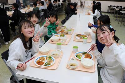 いよいよ、むかばき青少年自然の家での最後の食事となりました。追跡ハイキングで、頭と体をつかい、お腹も減ったようです。お昼もおかわりの争奪戦が繰り広げられています。