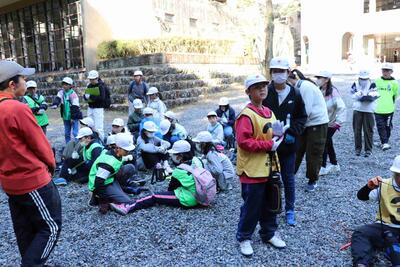 使った部屋の片付けを行い、厳しいチェックに合格した後は、班ごとの追跡ハイキングです。つどいの広場に集合し、班ごとに決めた掛け声でスタートです。(この掛け声も評価され、ボーナスポイントがもらえるそうです)さて、結果はいかに? 結果は、おわりのつどいで発表されるようです。お楽しみに!