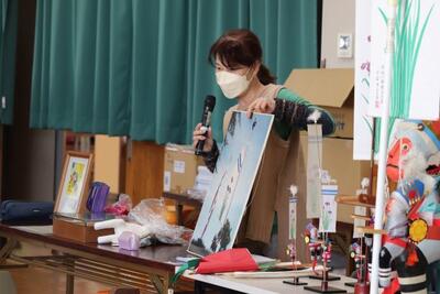 4年生は国語「伝統工芸のよさを伝えよう」の学習でを行っています。11月20日(月)は、県内唯一の「のぼり猿」制作者(伝統工芸士)である橋倉由美さんを講師に迎え、「のぼり猿」の歴史や制作工程、「のぼり猿」に込める思いなどについてお話いただきました。