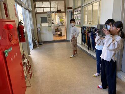 11月22日(水)3年生が、学校にある消火栓などの消防設備を調べていました。社会科「火事からくらしを守る」の学習で、身近な消防施設を調べる活動の一環でした。日頃から目にしている設備も、改めて調べてみると思ったよりも多くあるなど、新たな発見につながったようです。