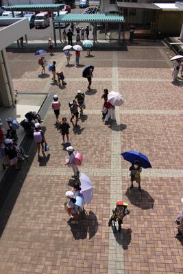 直射光を避けるため、日傘を差している子ども達も見られました。