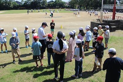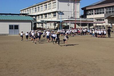次第に気温が上がり始めた3時間目に、3年生が運動場で走りました。