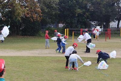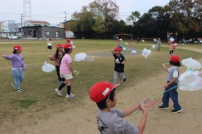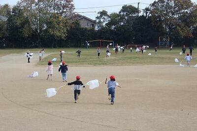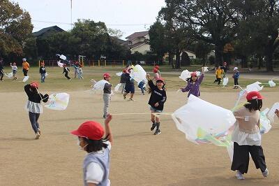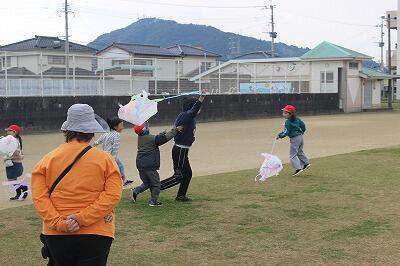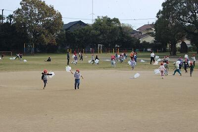 先週金曜日、1年生がたこ揚げをしていました。