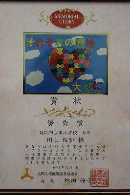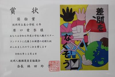 人権ポスターコンテストの表彰状をいただきました