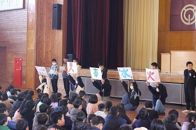 そして、終業式が終わった後、生活委員会の皆さんが冬休みに気を付けることを、低学年にも分かりやすく説明しました。