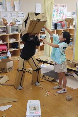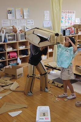 紙の箱を開いてイメージをふくらませたり、拾ったどんぐりを使って飾ったりしている作品です。