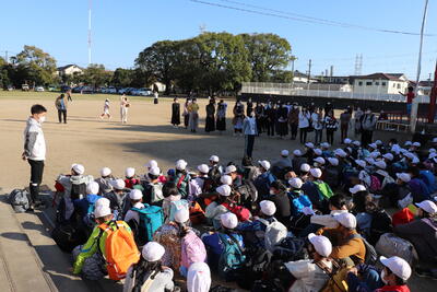 会場は、写真・動画撮影禁止となっていましたので、出発前の直前リハーサルの様子を掲載します。数か月前から練習を始め、昼休みなどにも自主的に取り組んできた成果が発揮されたようです。4年生の皆さん、お疲れ様でした。