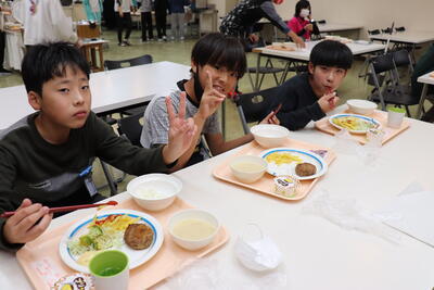 たくさん食べた後は、協力して片付けです。おいしく食べることができることに感謝です。「ごちそうさまでした。おいしかったです。」いつもの挨拶が食堂に響いています。調理員さんも気持ちの良い食べっぷりに笑顔でした。
