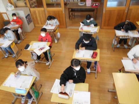 学年のまとめのテストをみんな頑張っていました。
