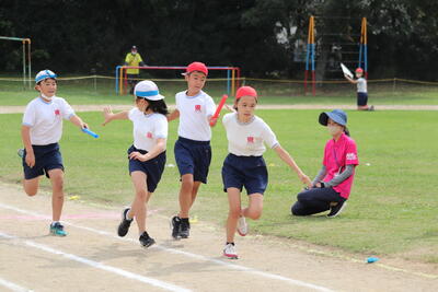 運動会まで残り10日を切りました。体育の時間はもちろんですが、昼休みなどを使って自主的な練習に取り組み姿も見られます。10月5日(水)の昼休みにも、3年生が学年リレーの練習を行っていました。走力のみならず、スムーズなバトンパスが勝敗の鍵を握ります。勝利を目指し、チーム力を高めてほしいものです。