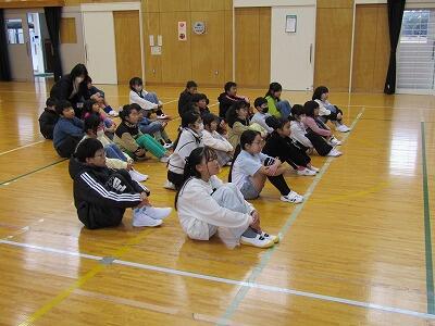 3~6年生の体育の授業の様子です。日向高校の体育振興指導教員の先生に、跳び箱の指導のお手伝いをしていただきました。この日が最初でしたので、3~6年合同の授業でした。この後は、3・4年、5・6年の同様の授業が、各3回ずつ計画されています。