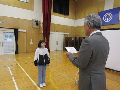 また、「多読賞」「県文集ともだち」「BFC防火作品展」「体力テスト」「陸上の大会」で活躍した子どもたちに賞状を授与しました。