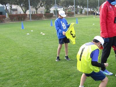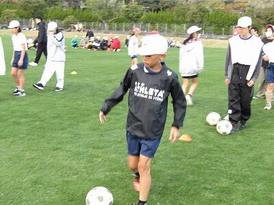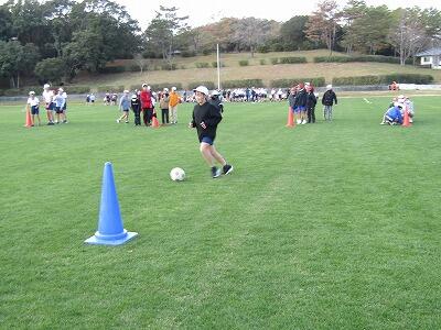 午前の部は、サッカー教室に参加しました。FC延岡AGATAさんに指導していただきました。午後の部は、50m走や、玉入れ、ラダーゲッター(ひもでつながったボールを「ラダー」と呼ばれる棒状のターゲットに引っ掛けることで得点を競うスポーツ)に挑戦しました。