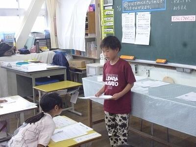意見発表では、3年生の子どもが、今年度頑張りたいこととして「わり算」「漢字」「体育」、5年生の子どもが「算数」「体育」「早寝早起き」の3つを発表しました。自分の目標をしっかりともって、それに向かって努力していくことは大切ですね。