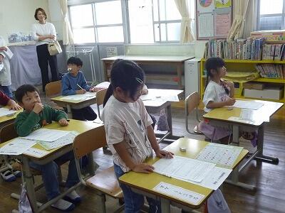 2月27日は、今年度最後の参観日でした。1年生は、音読「たぬきの糸車」やなわとび、クイズ「これはなんでしょう」、2年生は、音読「みきのたからもの」やかけ算、劇「お手紙」を発表しました。また、1・2年生合で合同で、「こぎつね」を合奏しました。