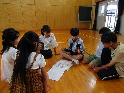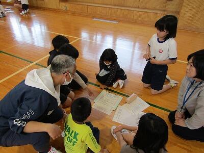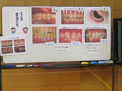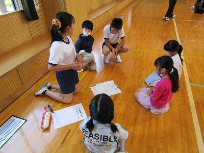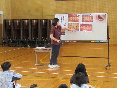 6月4日に、全校集会を行いました。今回は、今月の目標である「歯を大切にしよう」に関連して、養護教諭が、方財小学校の子ども達の歯の健康に関する実態の説明と、歯磨きをしっかりすることについての指導をしました。その後、縦割り班に分かれ、先月の目標に対する反省を行ったり、今月自分達が頑張ることを決めたりしました。