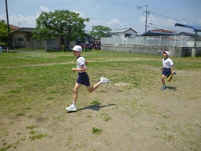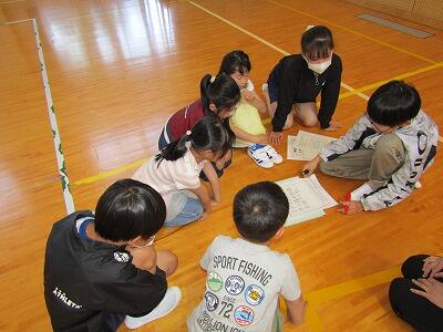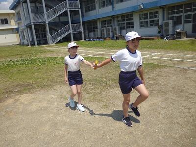 1・2年生と3・4年生の合同体育の様子です。2組に分かれてリレーをしたり、陣取りをしたりして汗を流しました。