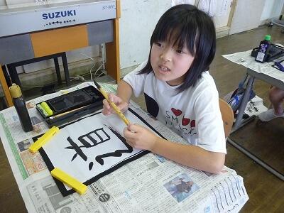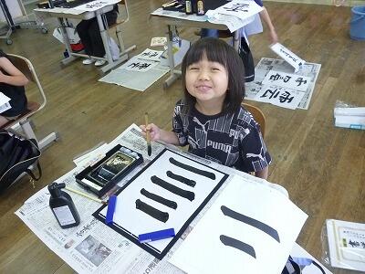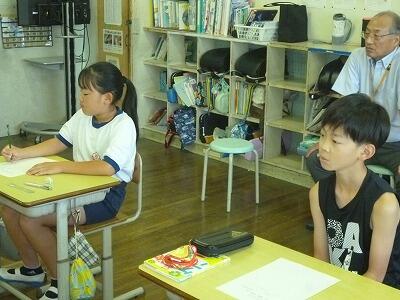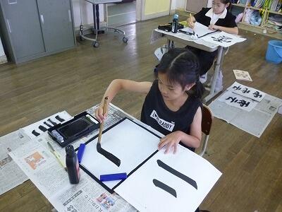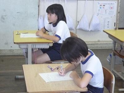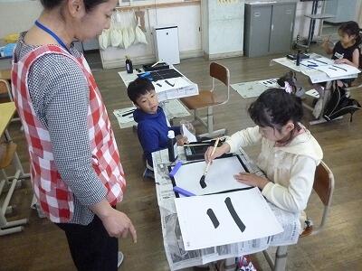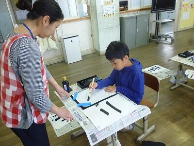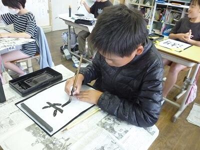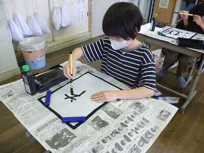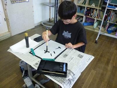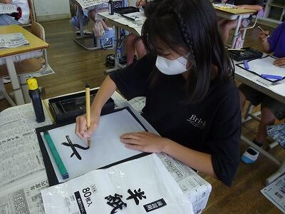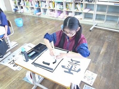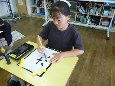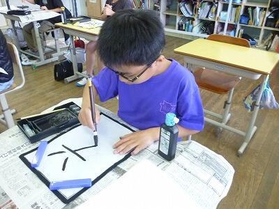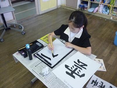 3・4年生の習字の授業の様子です。書き初めです。3年生は「正月」、4年生は「出発」という字の練習に取り組んでいました。