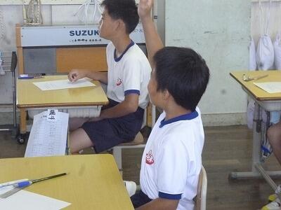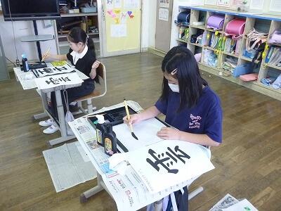 5・6年生の習字の授業の様子です。書き初めです。5年生は「新しい風」、6年生は「将来の夢」という字の練習に取り組んでいました。