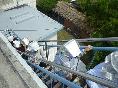 5月12日に、雨天延期となっていた避難訓練(地震・津波)を行いました。地震の後、大津波警報が発令されたという想定で、校舎屋上に避難しました。教室に戻った後は、東京消防庁が作成している地震の怖さを知ることができる動画を視聴しました。