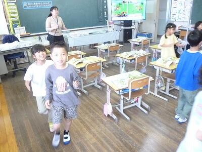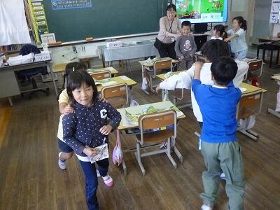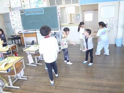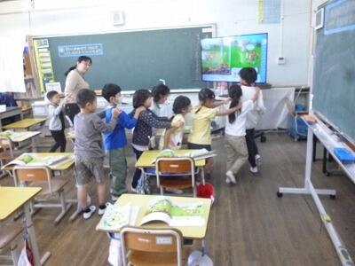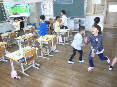 1・2年生の音楽の授業の様子です。「歌に合わせて貨物列車になって遊ぼう」という学習で、楽しそうに活動していました。