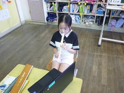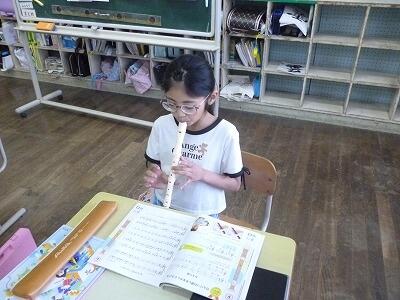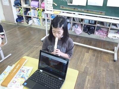 3・4年生の音楽の授業の様子です。3年生は「シシシでおはなシ」、4年生は「レッツゴー ソーレー」という曲を練習していました。