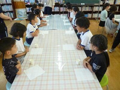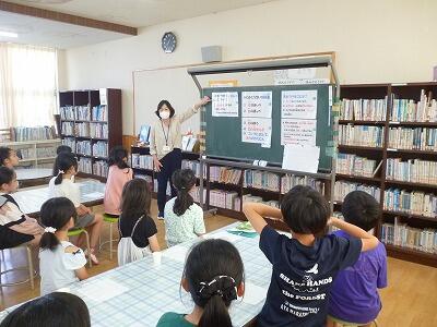 4月16日に、図書室の利用の仕方と「よいこのくらし」についての学習を、全校一斉に図書室で行いました。その後、4つの班に分かれ、4月の目標である「学校の決まりを守ろう」について、具体的な取組について話し合いました。