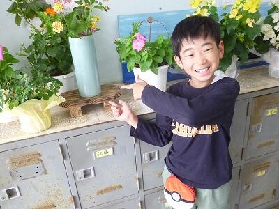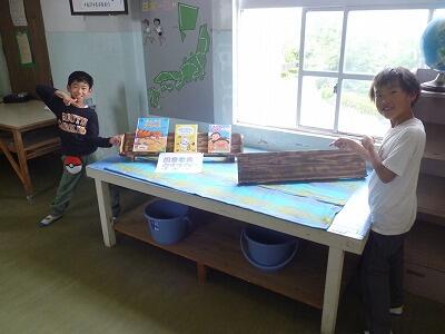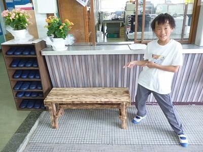 学校技術員は、運動場整備や花の手入れなどをしてくださいます。昔は、「用務員」と言っていました。今回、方財小のために、いろいろな物を作ってくださいました。階段手すりの支柱の隙間をうめる板、本立てや本棚、花台、玄関のベンチ(靴を履くときに座ったり、荷物を置いたりします。)などです。ありがとうございます。
