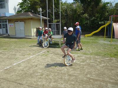 5月20日の業間の時間は、「チャレンジタイム」として、一輪車に挑戦しました。一人一人の子どもに専用の一輪車がありますので、昼休み時間や放課後に一生懸命練習する姿が見られるようになります。