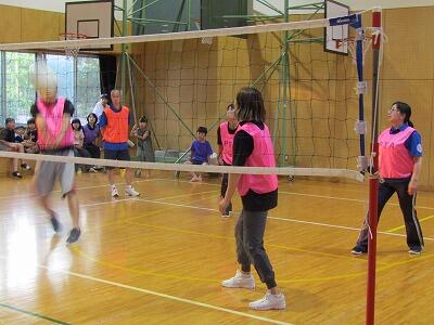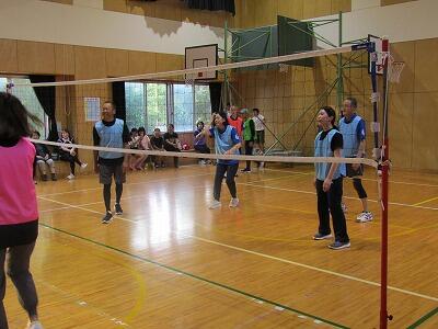 方財公民館と方財小学校が合同で主催するミニバレーボール大会が、5月31日に本校体育館で行われました。本校PTAから4チーム、地区から4チームの計8チームで汗を流しました。