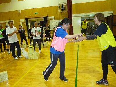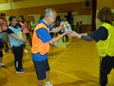 方財公民館と方財小学校が合同で主催するミニバレーボール大会が、5月31日に本校体育館で行われます。5月26日の夜に、その練習を行いました。笑顔がいっぱいの楽しいひとときでした。