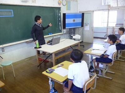 6月4日に、市のふるさと教育推進事業である「子どもたちに伝えたいこと」を行いました。少年サッカーのクラブチーム「ガナール」の代表をされている方をお招きしました。この方は、6年前まで、アルゼンチンでプロサッカー選手でしたので、一流のアスリートですね。