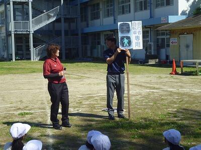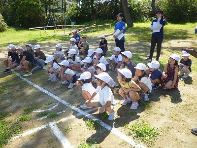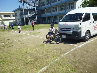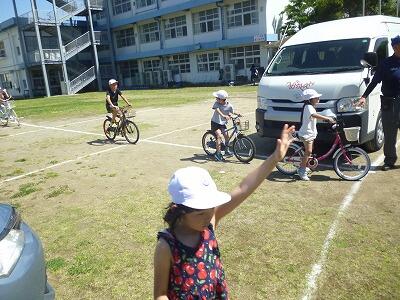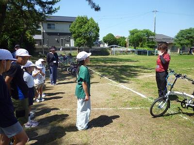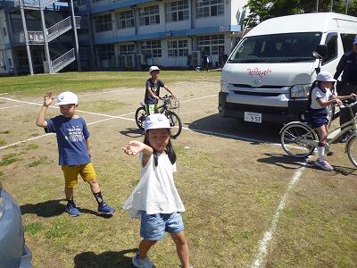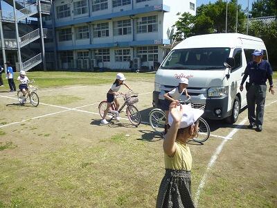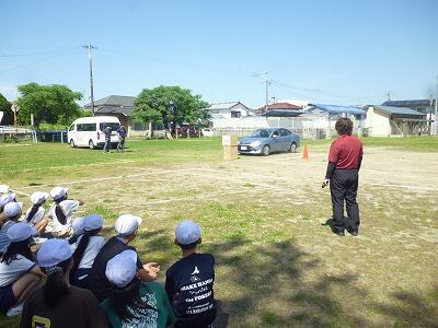 6月5日に、梅田学園の方を講師としてお招きし、交通安全教室を実施しました。青の点滅や赤信号の意味、車の内輪差の実験、自転車の点検などを指導していただいた後、安全を確認して道路を横断する練習をしました。