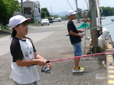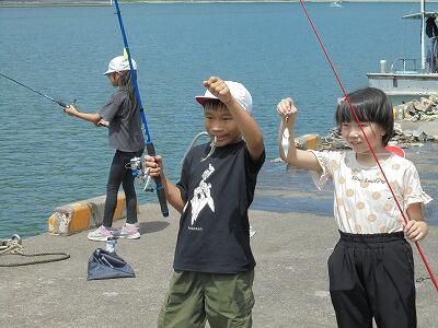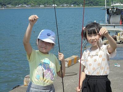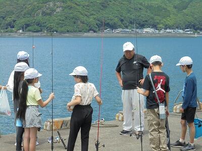 6月6日に、4~6年生のクラブ活動で、釣りを行いました。場所は、漁協前の船着き場です。今年度から、1学期と2学期に1回ずつ釣りに行くことにしました。