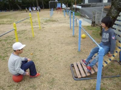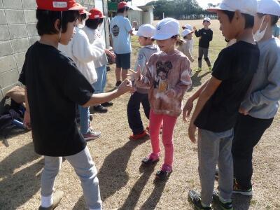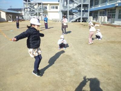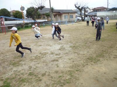 昼休み時間の様子です。曇り空でしたが、寒さに負けず、たくさんの子ども達が運動場で遊んでいました。「だるまさんが転んだ」は、笑顔がたくさんありました。
