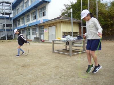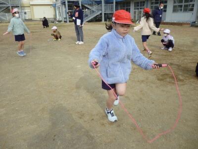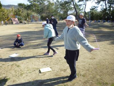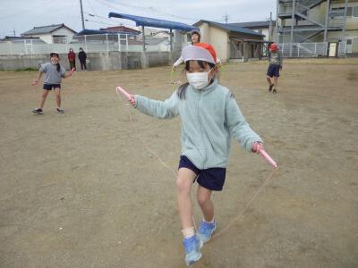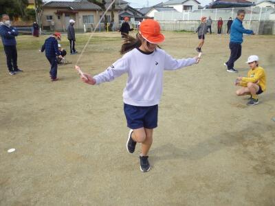 1月30日から、業間の時間に、ぴょんぴょんタイムの活動を始めました。1分跳びをしたり、後ろ跳びや他の跳び方に挑戦したりしました。この日は、とても風が強かったのですが、子ども達は風に負けずに頑張っていました。なわとび大会は、2月17日(金)の予定です。