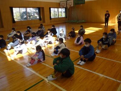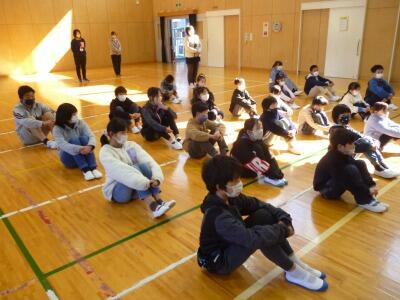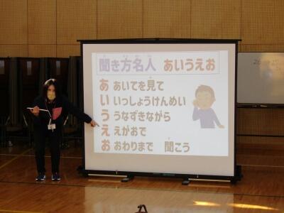 1月31日の業間の時間に、2月分の全校集会を行いました。2月の生活目標は、「聞き方、話し方名人になろう」です。「聞き方名人あいうえお」と「話し方名人あいうえお」について、子ども達に指導しました。来週は、「聞き方がんばり週間」です。