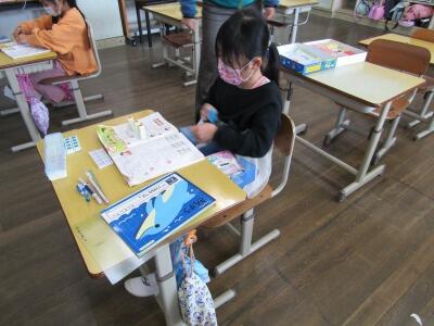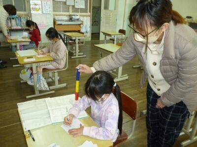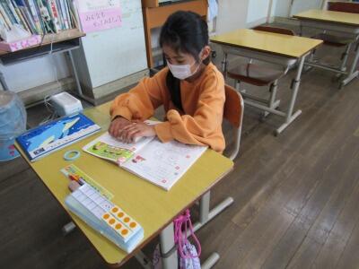 2年生の算数の授業の様子です。「半分の半分の大きさ」を考える問題に挑戦していました。年度末になり、授業態度も今まで以上に集中して取り組んでいます。