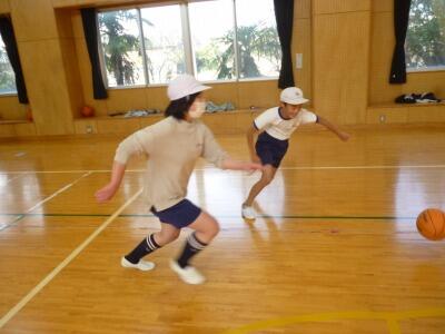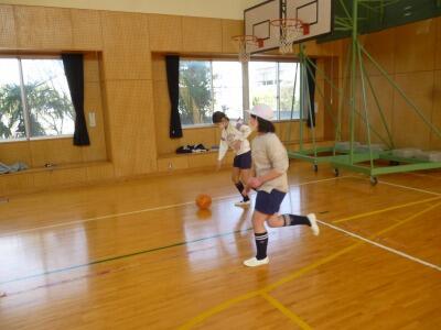 5・6年生の体育の授業の様子です。バスケットボールの練習で、思いっきり走り回っていました。まだまだ寒い日が続きますが、子ども達の体はすっかり温まっていました。
