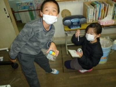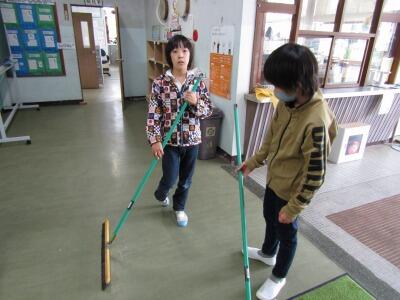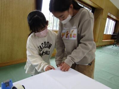 3月22日に、卒業式の準備を行いました。1・2年生は、4校時に体育館の床や渡り廊下の掃除をしました。3~5年生は、5・6校時に本格的な準備をしました。