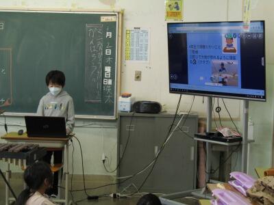 5・6年生の学級活動「歯周病を予防しよう」の授業の様子です。担任と養護教諭によるTT(ティーム・ティーチング)で、授業を行いました。