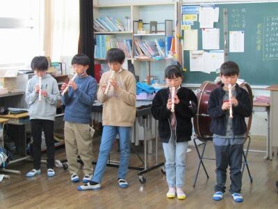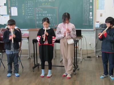 3・4年生の音楽の授業の様子です。「ミッキーマウスマーチ」の合奏の練習をしていました。ずいぶん練習を重ねてきていますので、とてもよくまとまっています。