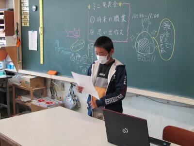 3月2日は、最後の参観日でした。各学年で、学習発表会を行いました。5・6年生の発表は、「プレゼン『将来の職業』」「作文『思い出』」でした。子ども達の1年間の大きな成長を感じました。