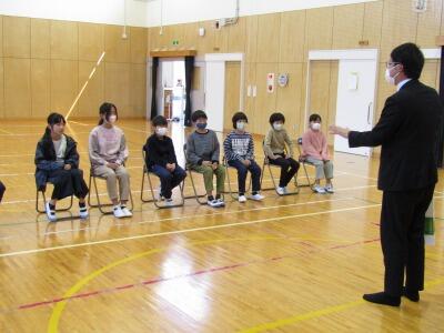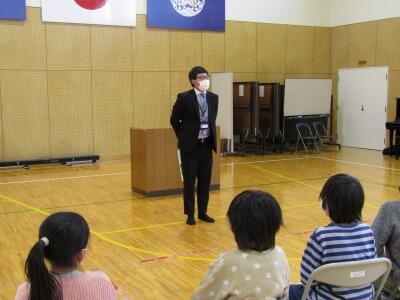 今回は、教頭講話です。「振り返る」ことの大切さを子どもたちに伝え、1年間の振り返りを行い、4月からの新たな目標につなげていくことを指導しました。