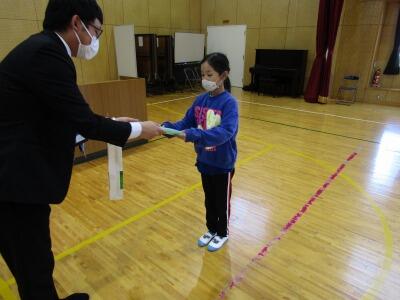3月14日に、鈴木教育ソフトの担当者の方が来校され、表彰式を行いました。賞状の他、図書カードなどもいただきました。ありがとうございました。
