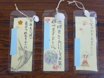 また、前回は、子ども達の目標や願い事を短冊に書いて飾っていたのですが、その短冊をラミネートして、方財の海岸で集めた貝殻を付けて、持ってきてくださいました。子ども達が大喜びします。