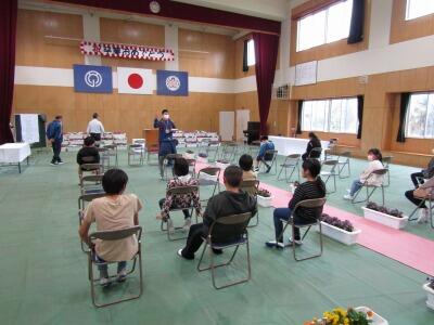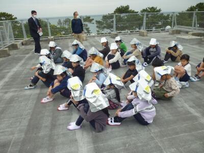子ども達は、通常どおり登校した後、事前指導を受けて一度帰宅します。9:00の地震発生の防災無線を聞き、それぞれの家庭で判断した避難場所に避難します。子ども達を含めて、200名近くが参加していました。